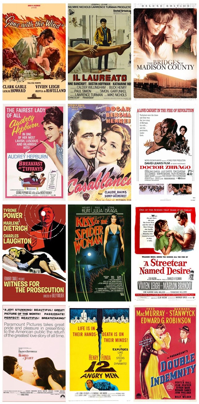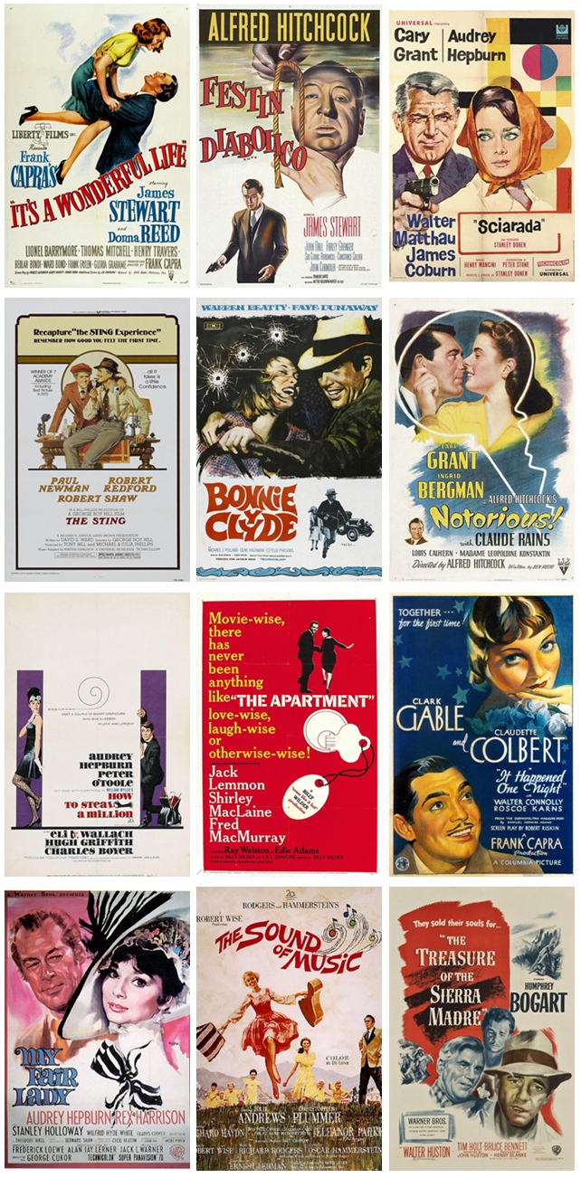 包括各知名电影人:奥黛丽赫本、希区柯克、阿龙德兰等的作品
