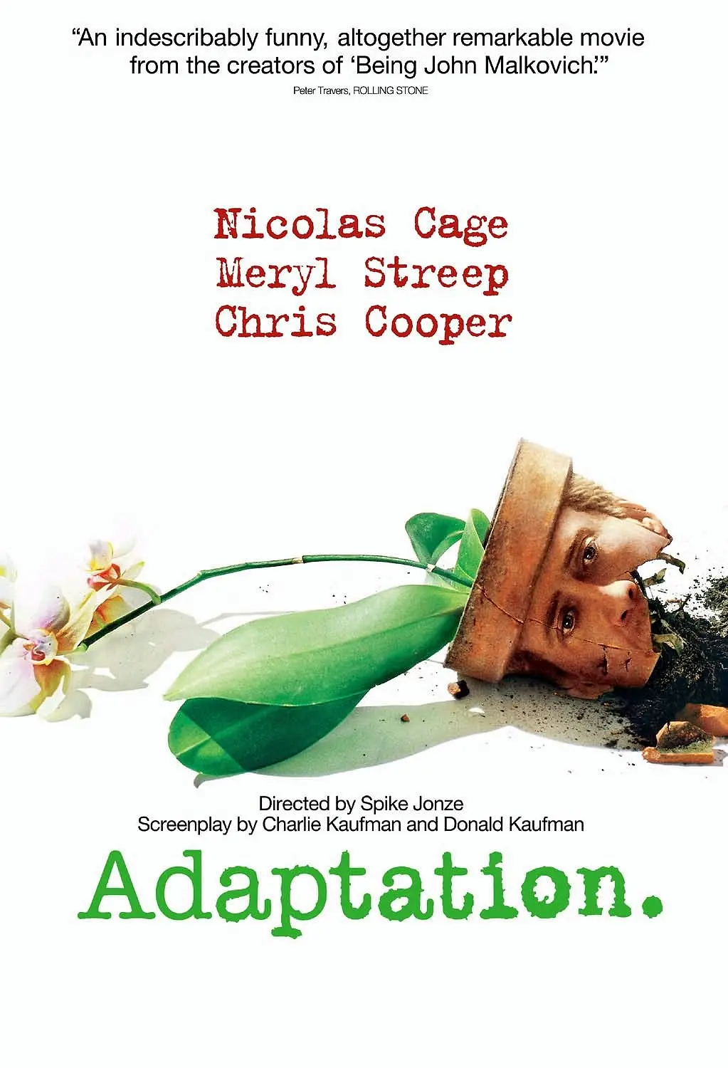 女记者苏珊(梅丽尔•斯特里普 Meryl Streep 饰)采访了一个因酷爱兰花,经常偷采兰花而满身官司的“采花贼”,并将此人的故事加工成了传记小说《兰花窃贼》。不久,好莱坞某电影公司将这本书的改编权买了下来,并请来了颇负盛名的改编人查理(尼古拉斯•凯奇 Nicolas Cage 饰)来将它改编成电影剧本。