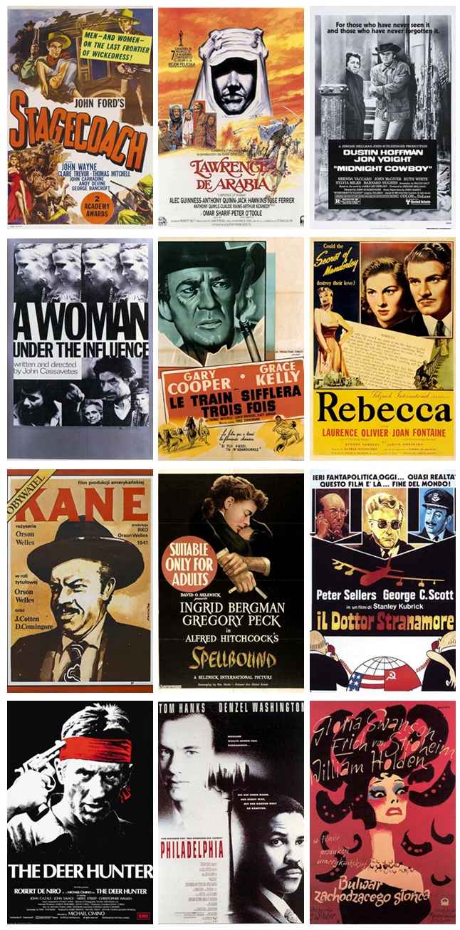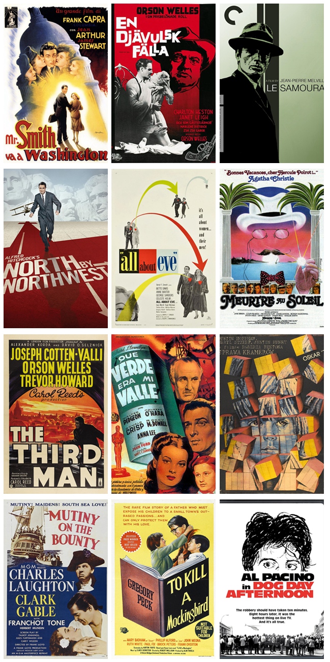 包括各知名电影人:奥黛丽赫本、希区柯克、阿龙德兰等的作品