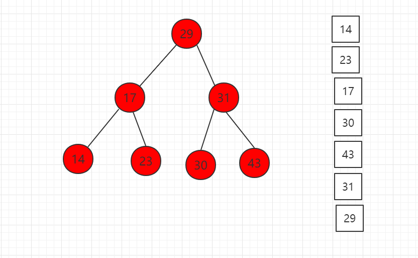 后序遍历结果图示:
