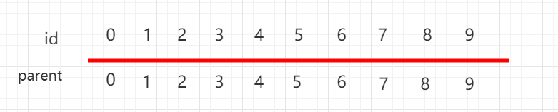 构建这种指向父节点的树形结构, 使用一个数组构建一棵指向父节点的树,parent[i] 表示 i 元素所指向的父节点。