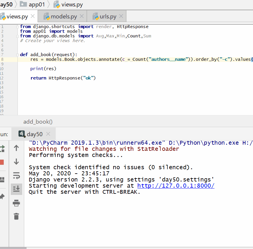 Django 使用聚合查询前要先从 django.db.models 引入 Avg、Max、Min、Count、Sum(首字母大写)。