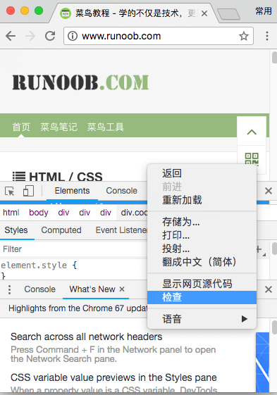 或者你可以右击鼠标选择 "检查",如下图: