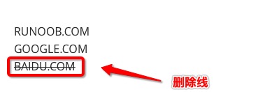 如果段落上的文字要添加删除线,只需要在文字的两端加上两个波浪线 ~~ 即可,实例如下: