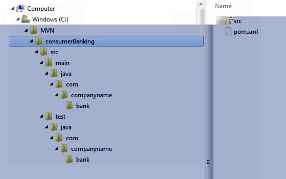 | src/main/java contains | java 代码文件在包结构下(com/companyName/bank)。 |