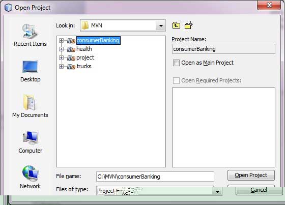 • 选择项目的路径,即使用 Maven 创建一个项目时的存储路径。假设我们创建了一个项目: consumerBanking. 通过 Maven 构建 Java 项目 查看如何使用 Maven 创建一个项目。