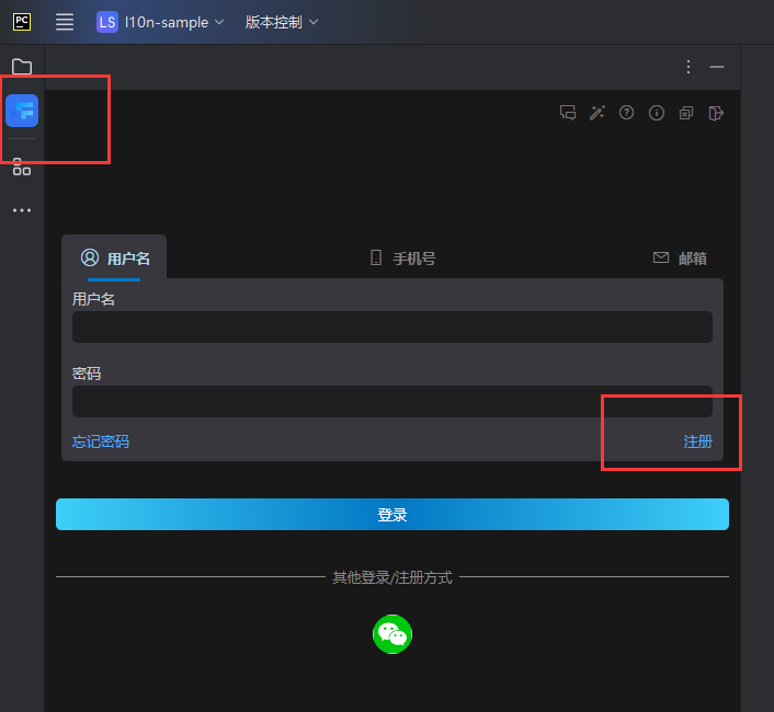 安装完成后左侧会出现Fitten Code插件图标,注册登录后即可开始使用