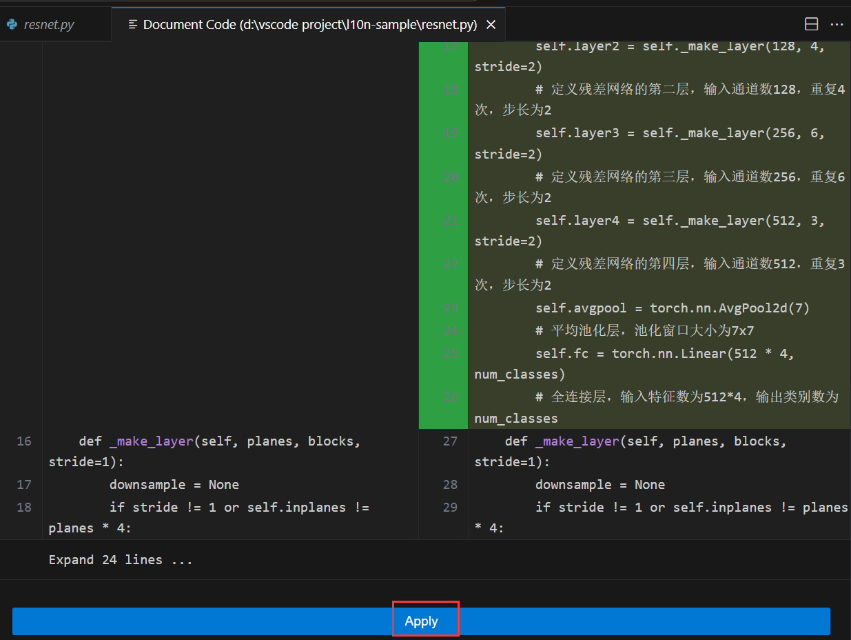 即可生成对应注释如下图所示,点击"Apply"后即可应用: