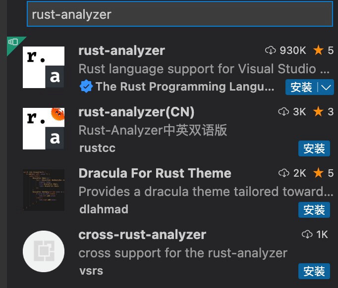 用同样的方法再安装 rust-analyzer 和 Native Debug 两个扩展。