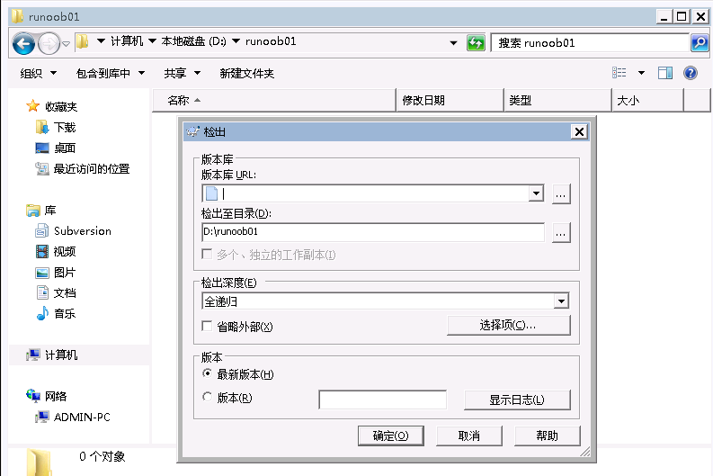 接着,稍微看一下 Checkout directory(检出至目录),这个字段应该要指向您的 runoob01 目录。