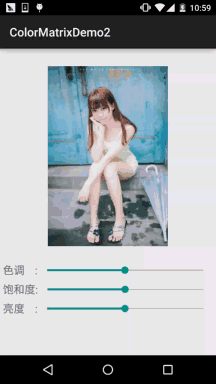 img_meizi.setImageBitmap(ImageHelper.handleImageEffect(mBitmap, mHue, mStauration, mLum));