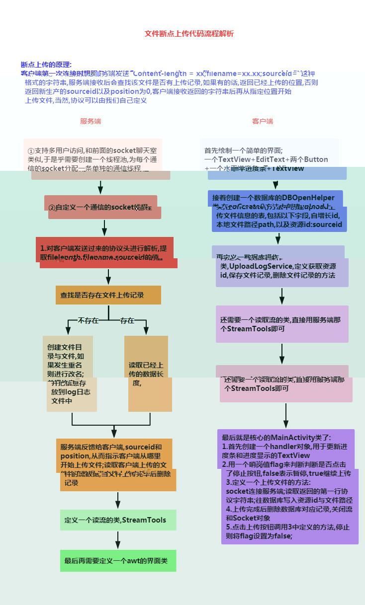上节中我们给大家接触了Socket的一些基本概念以及使用方法,然后写了一个小猪简易聊天室的 Demo,相信大家对Socket有了初步的掌握,本节我们来学习下使用Socket来实现大文件的断点续传! 这里讲解的是别人写好的一个Socket上传大文件的例子,不要求我们自己可以写出来,需要的时候会用 就好!