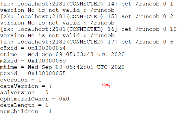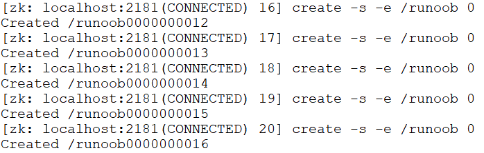 • [-s] [-e]:-s 和 -e 都是可选的,-s 代表顺序节点, -e 代表临时节点,注意其中 -s 和 -e 可以同时使用的,并且临时节点不能再创建子节点。