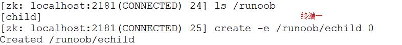 $ ls /runoob $ create /runoob/child 0 $ create /runoob/child/ch01 0