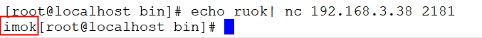 ruok 命令用于查看当前 zkserver 是否启动,若返回 imok 表示正常。实例如下: