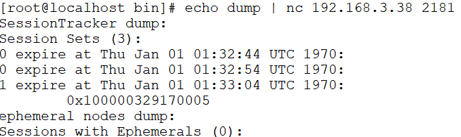 dump 命令用于列出未经处理的会话和临时节点。实例如下: